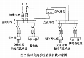 在對現(xiàn)場原有直流體系饋線網(wǎng)絡進行仔細核對后,擬定了替換計劃,總體的替換思路是:搭建一個簡易的暫時直流體系,利用暫時體系轉(zhuǎn)接負載。如圖2所示。