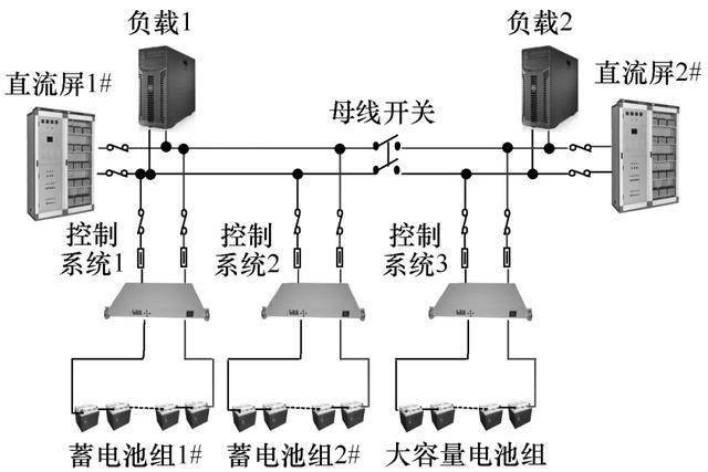 將原有的兩組蓄電池通過(guò)本文方法進(jìn)行并聯(lián)使用,形成容量更大的蓄電池系統(tǒng)接入直流母線1將另一個(gè)大容量的新蓄電池組及相應(yīng)的控制系統(tǒng)接入直流母線2。在運(yùn)行幾年后,待原有的兩組蓄電池到了使用壽命后,再更換成新的大容量的蓄電池組,將提高蓄電池組的利用率,降低電池采購(gòu)成本。